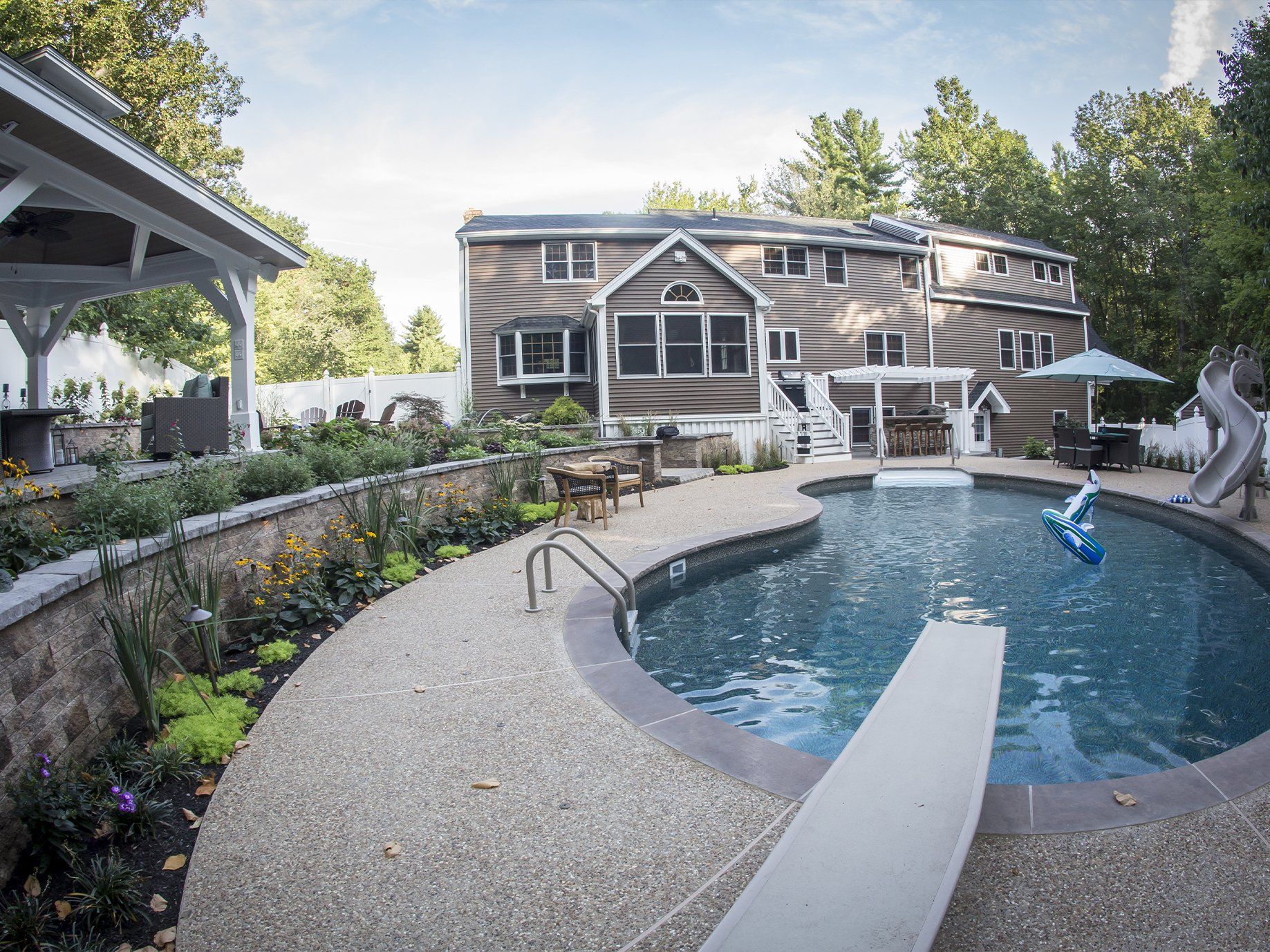 Dandini Landscape can recreate the region surrounding your inground swimming pool bringing elegance to the envy of your neighbors. Have us add a special waterfall effect that empties into the pool and remake your entire backyard in the process.